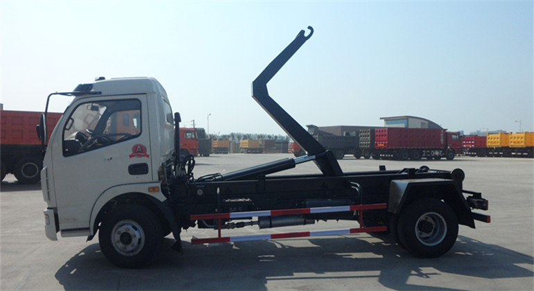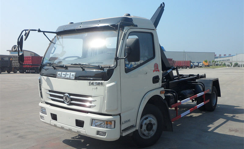 東風多利卡6方勾臂式垃圾車底盤配置:軸距3800,朝柴CY4102-CE4C國五柴油機,120馬力帶渦輪增壓, 大梁192,前橋2.2噸后橋4.2噸后橋速比4.875,輪胎7.50R16,方向助力,斷氣制動,離合器助力,5檔變速箱,東 風大多利卡L寬體駕駛室(可選乳白色或藍色),單排,手動前翻轉,帶暖風。