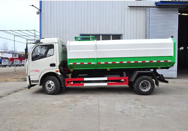 東風8方掛桶式垃圾車底盤配置:東風多利卡寬體駕駛室,可選擇玉柴140馬車,康明斯125馬力,朝柴120馬力帶增壓發動機,5檔變速箱,5噸后橋,7.50-16輪胎,氣剎,方向助力。 東風8方掛桶式垃圾車 垃圾廂容積8立方,采用武鋼國標碳鋼板制作,邊3mm底4mm厚度,廂體右側掛桶提升裝置一套,通過液壓系統操作,可自動上下提升,傾倒垃圾桶內垃圾,后門手動鎖緊方式打開,自卸方式卸料,可通用全國各型號鐵掛桶.