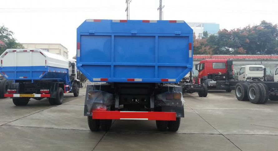 工作原理:自裝卸式垃圾車是由密封式垃圾廂、液壓系統、操作系統組成,能配幾十個垃圾桶,實現一車與多個垃圾桶聯合作業,廂體上的液壓升降裝置可將垃圾桶吊上、放下,上下升降,上下一次工作循環時間為50S,密封式廂體環保衛生,可避免二次污染。其自裝式的掛桶裝置可直接將路邊的垃圾桶掛在上面用提升機直接到在垃圾箱體里面省去了裝垃圾的麻煩。