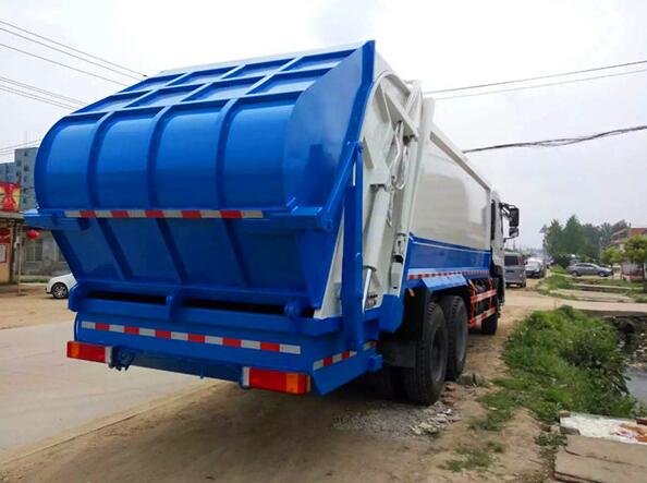 上裝配置:新款無筋條箱體,平面圓弧美觀大方,有效壓縮容積20立方,尾部帶翻轉上料機構,電控手動雙操控系統,駕駛室與車尾部雙控制箱,尾部帶3厘米后橡膠密封壓條,帶污水收集槽,大容量污水箱,箱體可按要求噴繪圖案和字樣。