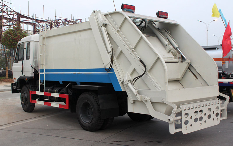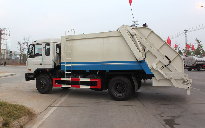 東風153壓縮式垃圾車整車配置:東風153底盤,玉柴170馬力或者康明斯190馬力發動機,4500mm軸距,10.00尼龍胎,帶方向助力,12方垃圾箱體,箱體材料厚度邊三底四。